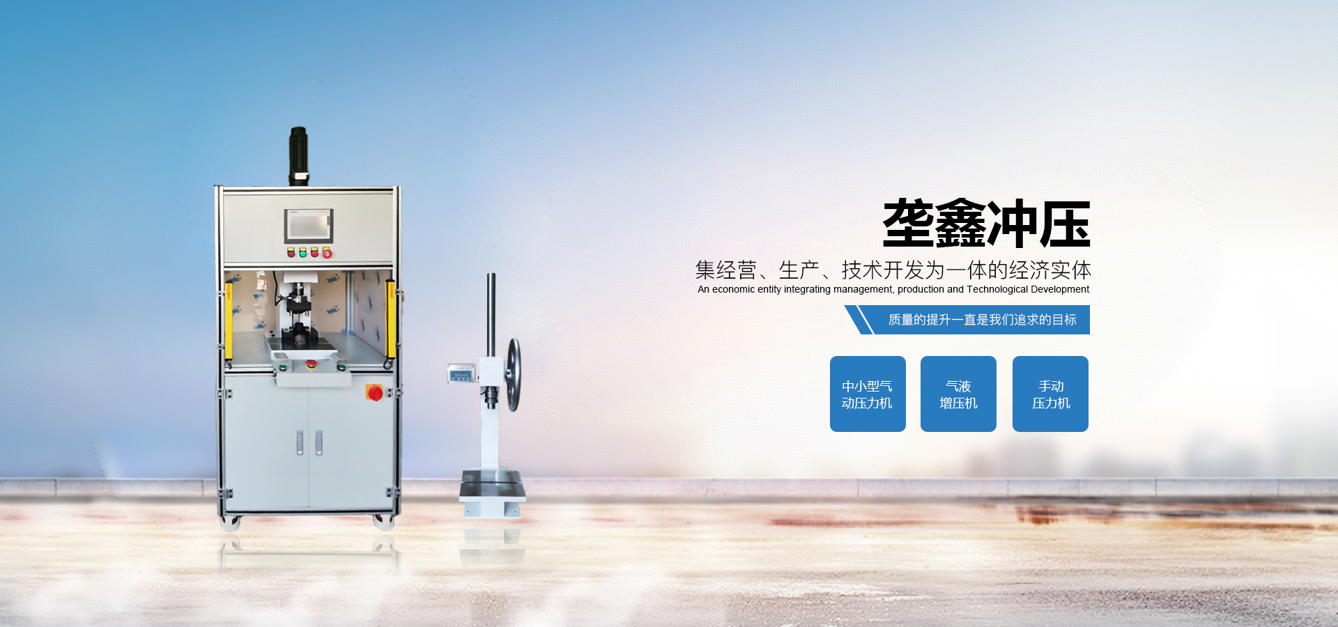 煙臺壟鑫沖壓設(shè)備有限公司是集經(jīng)營、生產(chǎn)、技術(shù)開發(fā)為一體的經(jīng)濟實體,專業(yè)致力于中小型壓力機、非標壓力機的設(shè)計開發(fā)和制造。在引進德國、日本等國家先進的鉚壓控制技術(shù)及機器設(shè)計理念的基礎(chǔ)上,結(jié)合相關(guān)行業(yè)的實際需要,開發(fā)出各種臺式、落地式氣動壓力機、手動壓力機、氣液增壓機、氣液增力缸、旋鉚機、無鉚釘鉚接機等鉚接設(shè)備。產(chǎn)品應(yīng)用領(lǐng)域廣泛,適用于汽車零件、電子、電器、家電、包裝、五金、等行業(yè)。公司視質(zhì)量為生命,并一貫遵循對每一臺產(chǎn)品負責(zé),對每一位用戶負責(zé),真誠為您服務(wù)。 自公司成立以來,秉承“誠信,創(chuàng)新,專業(yè)”的經(jīng)營理念,以優(yōu)質(zhì)的產(chǎn)品,完善的售后服務(wù),樹立良好的品牌形象,服務(wù)于廣大新老顧客。我們竭誠于各位同仁攜手并進,共謀發(fā)展。